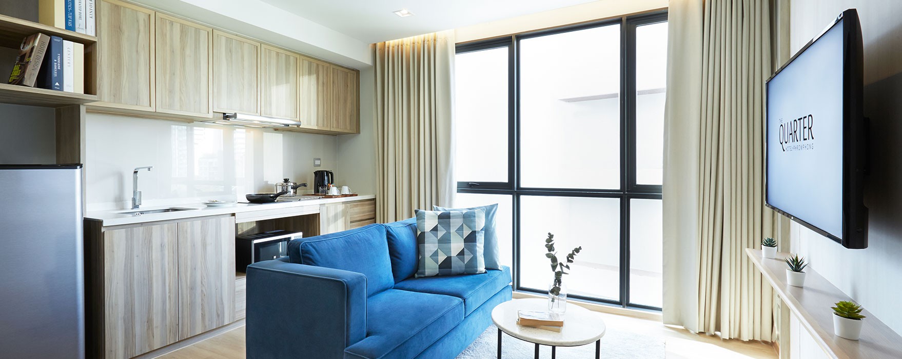 Situated in the heart of Sukhumvit (Sukhumvit Soi 31), The Quarter Phromphong offers a modern accommodation aimed to meet lifestyles of urbanites today, be it for leisure or on business. It is surrounded by award-wining bars and restaurants, latest shopping malls, office buildings, public parks, and international hospitals. In addition, it is close to BTS sky train Phromphong station, allowing easy access to all major parts of the city.