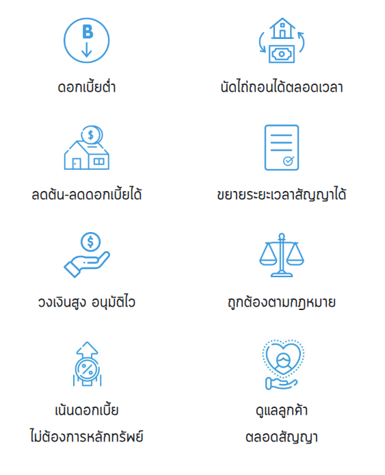 ให้คำปรึกษาการกู้ยืมโดยใช้หลักทรัพย์ของท่าน จำนอง - ขายฝาก เพื่อแปลงอสังหาริมทรัพย์มาเป็นเงินทุนหมุนเวียน