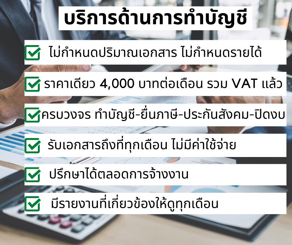 -ราคา 4,000 บาทต่อเดือน (ยังไม่รวมค่าสอบบัญชีประจำปี) ราคารวมภาษีมูลค่าเพิ่มแล้ว