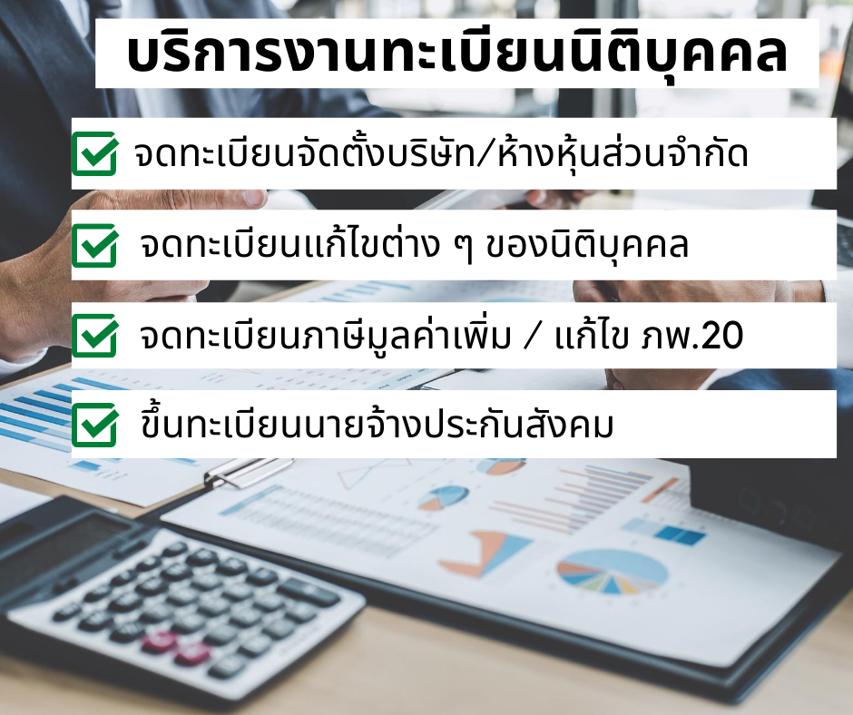-จดทะเบียนแก้ไขเกี่ยวกับนิติบุคคล ย้ายสำนักงานใหญ่ เปลี่ยนกรรมการ แก้ไขวัตถุประสงค์ ฯลฯ