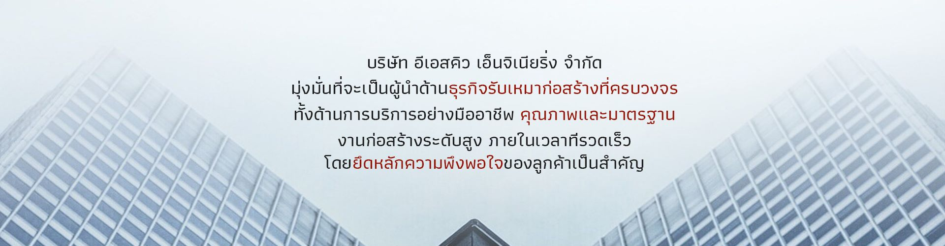 ได้เริ่มก่อตั้งตั้งแต่ปี 2551 ด้วยทุนจดทะเบียน 1 ล้านบาท โดยกลุ่มวิศวกรที่มีวิสัยทัศน์ในทิศทางเดียวกันต้องการให้ส่งมอบงาน ก่อสร้างที่มีคุณภาพงานที่ดีมีมาตรฐานเป็นที่ยอมรับของลูกค้าภายใต้งบประมาณ ที่เหมาะสมในระยะเวลาที่จำกัดประกอบกับมีความปลอดภัยในงานก่อสร้าง นับจากวันที่เริ่มก่อตั้งมาจนถึงวันนี้ เป็นเวลากว่า 10 ปี บริษัทอีเอสคิว เอ็นจิเนียริ่ง จำกัดมีการเติบโตขึ้นเป็นลำดับบริษัทฯ ได้เพิ่มทุนจดทะเบียนเป็น 5 ล้านบาท และมีแผนจะเพิ่มขึ้นอีกในอนาคต บริษัทฯ ได้รับความไว้วางใจ และได้รับการยอมรับ จากลูกค้าเป็นจำนวนมาก มีผลงานการก่อสร้างที่หลากหลาย อาทิเช่น กลุ่มโรงงาน อุตสาหกรรม กลุ่มโรงพยาบาล กลุ่มสำนักงาน กลุ่มร้านค้าต่างๆ กลุ่ม Fitness Club และกลุ่ม Showroom บริษัท อีเอสคิว เอ็นจิเนียริ่ง จำกัด พร้อมตอบสนองความต้องการของลูกค้าใน งานก่อสร้างทุกประเภท อันเป็นปัจจัยพื้นฐานที่สำคัญในความสำเร็จของธุรกิจบริษัทฯ พร้อมให้คำปรึกษาตั้งแต่งานออกแบบ งานก่อสร้าง จนกระทั่งงานซ่อมบำรุงภายหลัง ก่อสร้างแล้วเสร็จ ด้วยทีมงานวิศวกรผู้เชี่ยวชาญ และมากด้วยประสบการณ์ลูกค้าสามารถมั่นใจได้ว่าได้จะรับงานบริการที่ประทับใจ พร้อมคุณภาพของงานก่อสร้างที่ดี ได้มาตรฐาน คุ้มค่ากับงบประมาณที่ได้ลงทุน