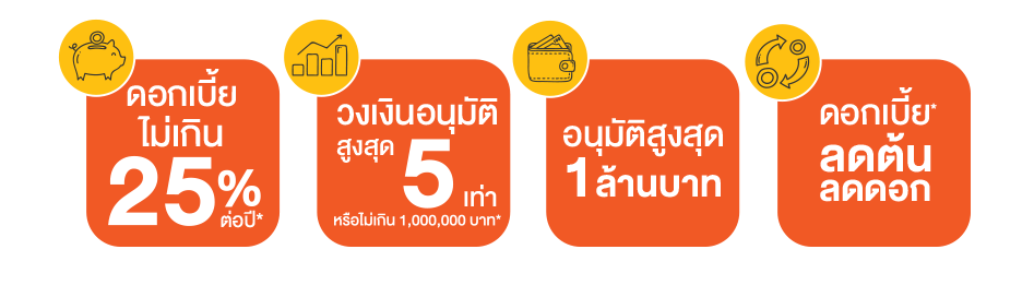 *การพิจารณาสินเชื่อส่วนบุคคลฯ เป็นไปตามเงื่อนไขและข้อกำหนดของบริษัทฯ