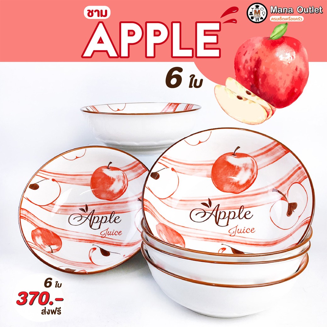 • Mana ชามลายแอปเปิ้ลใหญ่จุใจ 6 ชิ้น ขนาด 8 นิ้ว