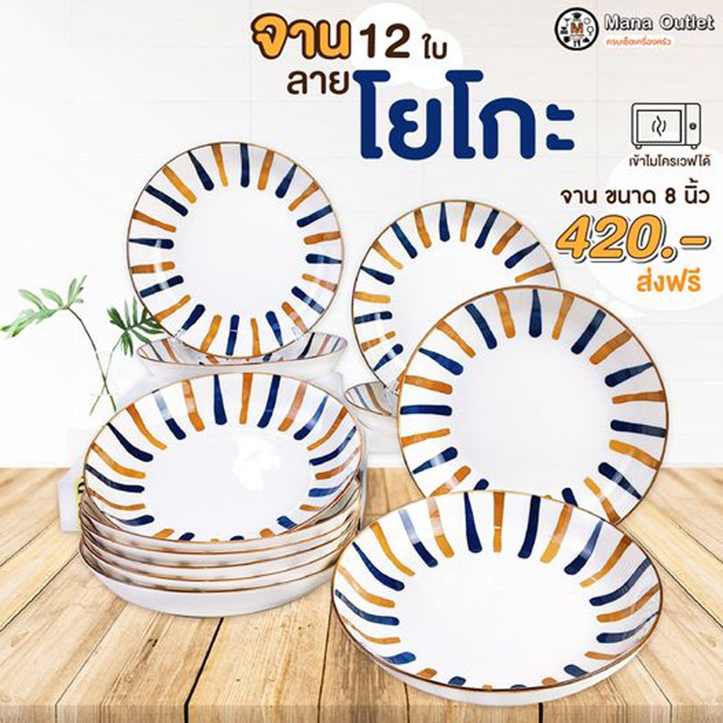 • Manaจานลายไอโกะ ขนาด 8 นิ้ว 12 ชิ้น