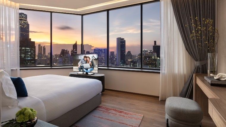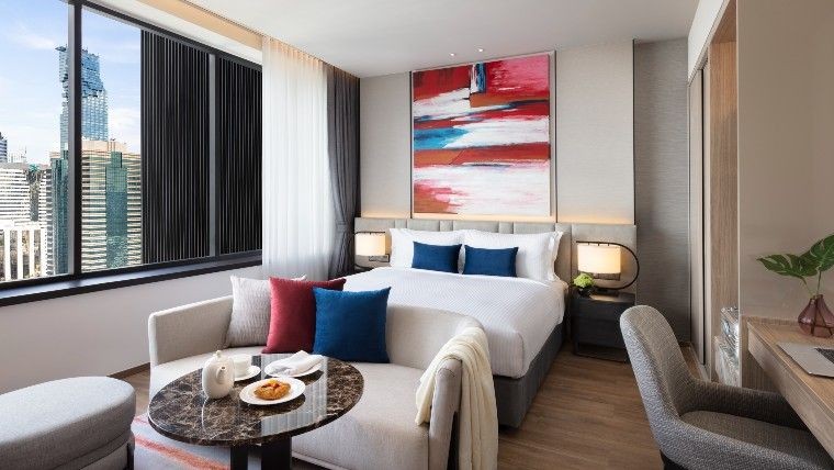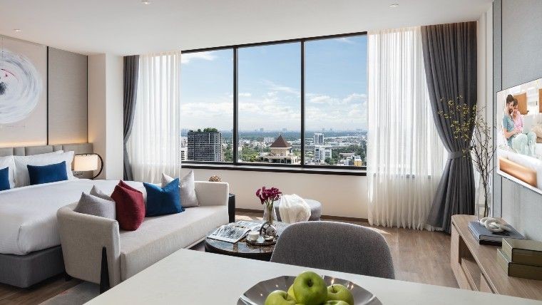 Ascott Embassy Sathorn Bangkok feature spacious Studio, One-bedroom, Two-bedroom, and Three-bedroom apartments. These room types feature elegantly designed interiors, a wide range of lavish amenities such as kitchen, washer and dryer, bathtub, spacious living spaces and advanced technology. These units are well-suited for holidaymakers, families, executives, and relocating executives on extended stays, looking for a comfortable and elegant experience in homely, serviced apartments in Bangkok. Besides serviced apartments, the property also feature a Deluxe category which is an open concept hotel room without the amenities featured for the apartments.