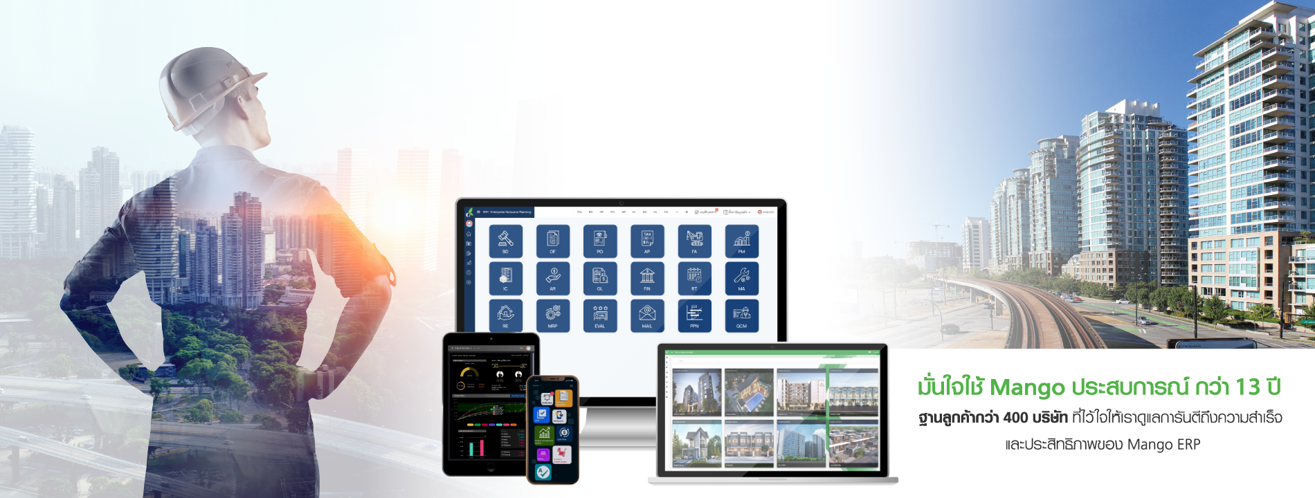 ก่อตั้งขึ้น เมื่อวันที่ 26 มิถุนายน 2551 ด้วยวิสัยทัศน์ที่เราจะเป็นองค์กรสร้างสรรค์ซอฟต์แวร์ ให้ครอบคลุมทุกส่วนการทำงานของธุรกิจรับเหมาก่อสร้างและอสังหาริมทรัพย์ หากพูดถึง ERP เราเป็นผู้นำอับดับหนึ่ง ณ ปัจจุบันองค์กรเราขยายตัวอย่างรวดเร็ว ขับเคลื่อนอย่างมีประสิทธิภาพ และเป็นไปตามเป้าหมายที่เราตั้งไว้ Mango ERP เราก้าวขึ้นสู่อันดับหนึ่งของประเทศไทย ฐานลูกค้ากว่า 300 บริษัท ที่ไว้ใจให้เราดูแล การันตีถึงความสำเร็จ และประสิทธิภาพของ Mango ERP