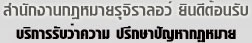 บริการคดีความ คดีแพ่ง คดีอาญา คดียาเสพติด เช็คเด้ง คดีครอบครัว ฟ้องหย่า ฟ้องชู้ เรียกค่าอุปการะเลี้ยงดู คดีมรดก คดีที่ดิน บัตรเครดิต เช่าซื้อรถยนต์จัดทำอุทธรณ์รับให้คำปรึกษา กฎหมายฟรีแก่ผู้ได้รับความเดือนร้อนไม่ได้รับความเป็นธรรม ถูกเอารัดเอาเปรียบ รับฟ้อง ต่อสู้คดี ยื่นคำให้การคดี เช่น คดีเงินกู้ คดีบัตรเครดิตทุกธนาคาร คดีสินเชื่อธนาคาร คดีร้องขอ เป็นคนสาบสูญ คดีทำนิติกรรมแทนผู้เยาว์ คดีผิดสัญญา คดีเช็คเด้ง คดีซื้อขาย คดีเช่า คดีก่อสร้าง คดีรถชน คดีรถน้ำท่วม บริษัทประกันไม่รับผิดชอบ คดีละเมิด คดีซื้อรถ คดีไฟแนนซ์ยึดรถ คดีค้ำประกัน คดีจำนอง คดีขายฝาก คดีบริษัทประกันไม่จ่ายเงิน คดีมีปัญหาภายในหุ้นส่วนบริษัท คดีที่ดิน