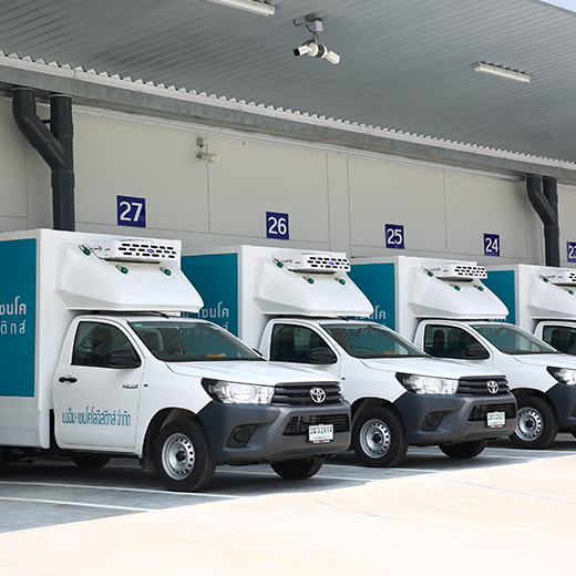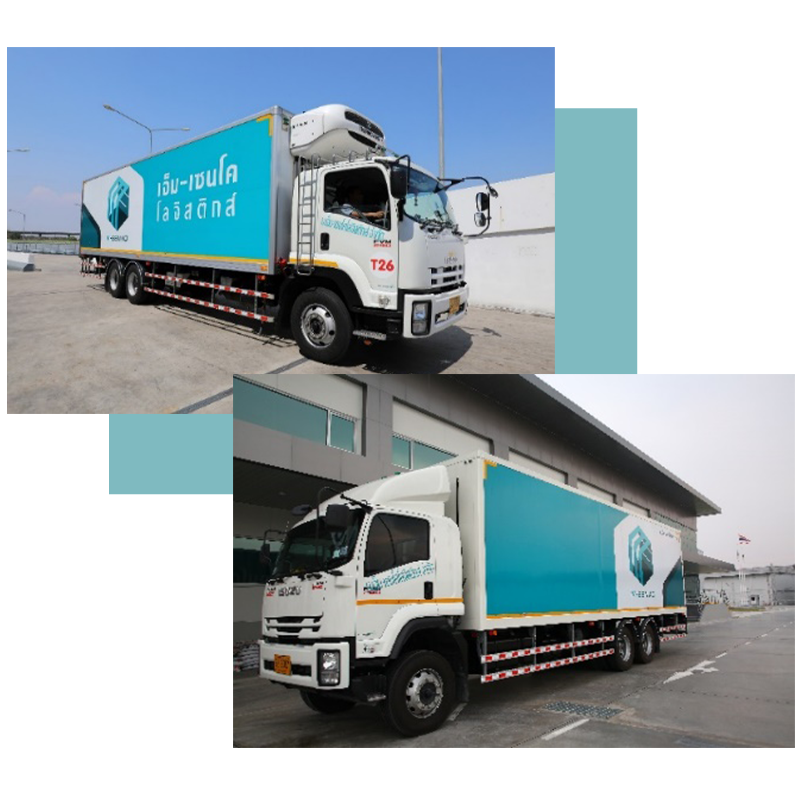 เรามีรถขนส่งสินค้าควบคุมอุณหภูมิหลากหลายประเภทให้เลือกใช้ตามความต้องการที่หลากหลายของลูกค้า เช่น การขนส่งในเมืองที่ต้องการความคล่องตัวโดยใช้บรรทุกขนาด 1 ตันทั้งหลังคาสูงและหลังคาเตี้ยรถบรรทุกขนาดใหญ่ เพื่อขนส่งสินค้าจำนวนมาก โดยสามารถขนส่งได้ 2 อุณหภูมิ เพื่อเพิ่มประสิทธิภาพและรถต้นทุนในการจัดส่ง