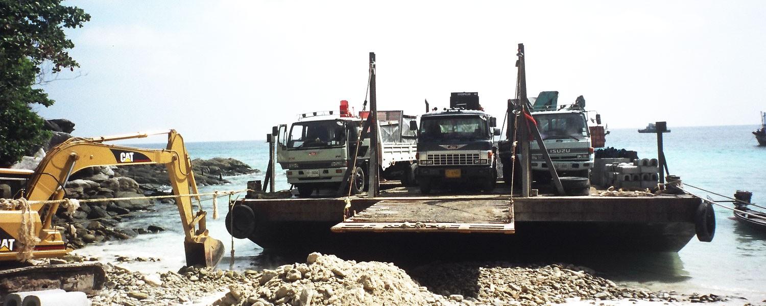 -Transferring building materials such as stones, building blocks from Krabi, Trang, Nakornsrithammarat, Satun to Phuket Island, Lanta Island, Phi Phi Island, and other islands in the Andaman Ocean.
