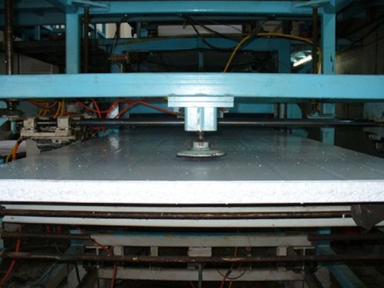 แผ่นฉนวนกันความร้อนสำเร็จรูป THREE WALL ผลิตโดยเครื่องจักรอัตโนมัติ (AUTOMATIC LAMINATEDMACHINE ) ด้วยกำลังการผลิต 250 ตรม./ชม. มีความกว้างมาตรฐาน 1,200 มม. (ความยาวขึ้นอยู่กับความต้องการของลูกค้าและความสามารถในการขนส่ง) ตัวแผ่นประกอบด้วย ฉนวนโพลีสไตรีนโฟม EXPANDOBLEPOLYSTYRENE (PS) ความหนาแน่น 1.00 – 1.25 ปอนด์/ ลบ.ฟุต มีคุณสมบัติเป็นฉนวนอยู่แกนกลาง (CORE) ประกบเชื่อมต่อกับผิวภายนอกที่เป็นโลหะ คัลเลอร์บอนด์ ทั้ง 2 ด้าน (บน-ล่าง) ด้วยกาว POLYMER ภายใต้แรงอัดรีดทั่วทั้งแผ่นอย่างต่อเนื่อง