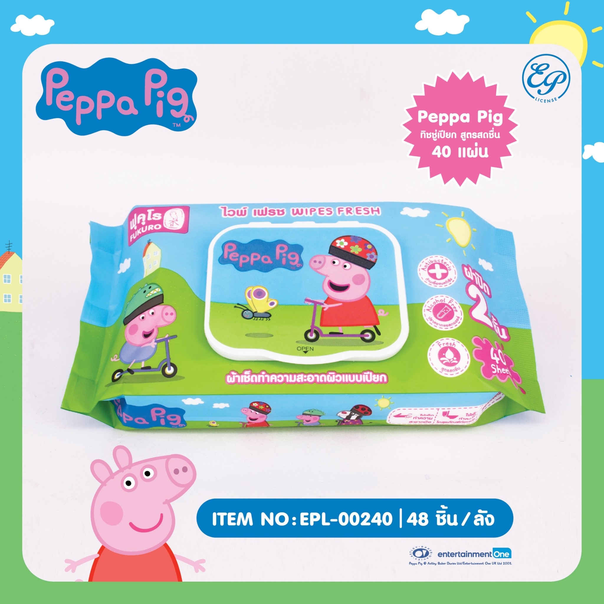• EPL-00240 Peppa Pig ทิชชู่เปียกสูตรสดชื่น 40 แผ่น แพ็ค 6 ชิ้น 90 บาท 15บาท/ ชิ้น