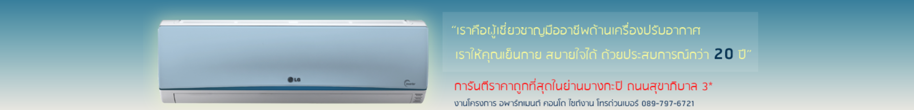 เราเป็นตัวแทนจำหน่าย  เครื่องปรับอากาศชั้นนำ ทุกยี่ห้อ มานานกว่า 25 ปี  อาทิ เช่น แอร์ผนัง  แอร์แขวนเพดาน  แอร์ซ่อนใต้ฝ่า แอร์เปลือย  แอร์4ทิศทาง  แอร์ตู้ยืน  ทั้งในอาคารบ้านเรือน  ออฟฟิต  และโรงงานอุตสาหกรรม โดยเครื่องปรับอากาศทุกยี่ห้อ มีมาตรฐานการผลิตจากโรงงานผู้ผลิต มีใบรับประกัน ทุกเครื่อง ทางร้านยังมีทีมงานทีี่่มีประสบการณ์สูงที่จะให้บริการท่านด้วยความเต็มใจ และสุภาพ อีกทั้งทางร้านยังใช้อุปกรณ์ และวัสดุที่ ได้รับมาตรฐาน มอก.  และท่อน้ำยาแอร์ที่ใช้เป็นแบบหนาทั้งหมด  โดยทางร้าน มีสโลแกน ว่า " เราจะทำหน้าที่การบริการให้ดีที่สุด เพื่อ ความพึงพอใจสูงสุดของลูกค้า "  ทำให้ ลูกค้า ที่ใช้บริการเราจึงมั่นใจ และให้ความไว้วางใจทางร้าน มาจนถึงทุกวันนี้ นอกจากนี้ ทางร้าน ยัง มีให้บริการ ล้างทำความสะอาด เครื่องปรับอากาศ และซ่อมแซมเครื่องปรับอากาศ สุดท้ายนี้ ทางร้านหวังเป็นอย่างยิ่งว่า จะได้รับความไว้วางใจในการใช้บริการจากลูกค้าทุกท่าน