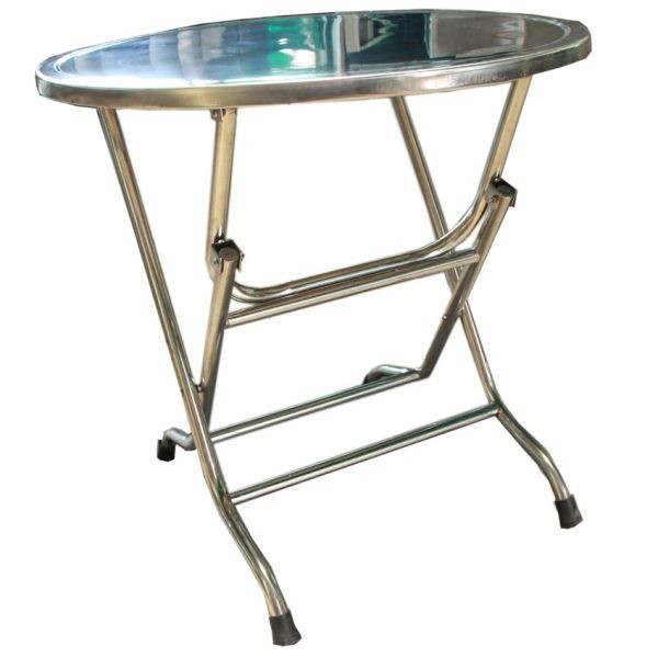 • โต๊ะกลมขาพับโค้งสแตนเลส