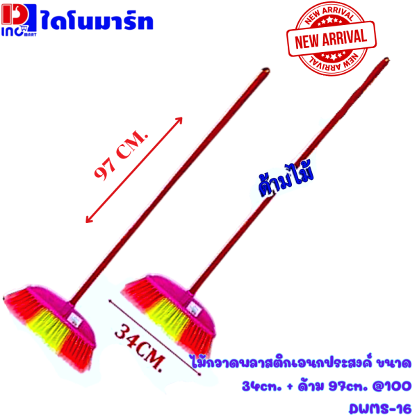 • ไม้กวาดพลาสติกเอนกประสงค์ ขนาด 34cm. + ด้าม 97cm. @100 DWMS-16 (สินค้าขายชุดx6)