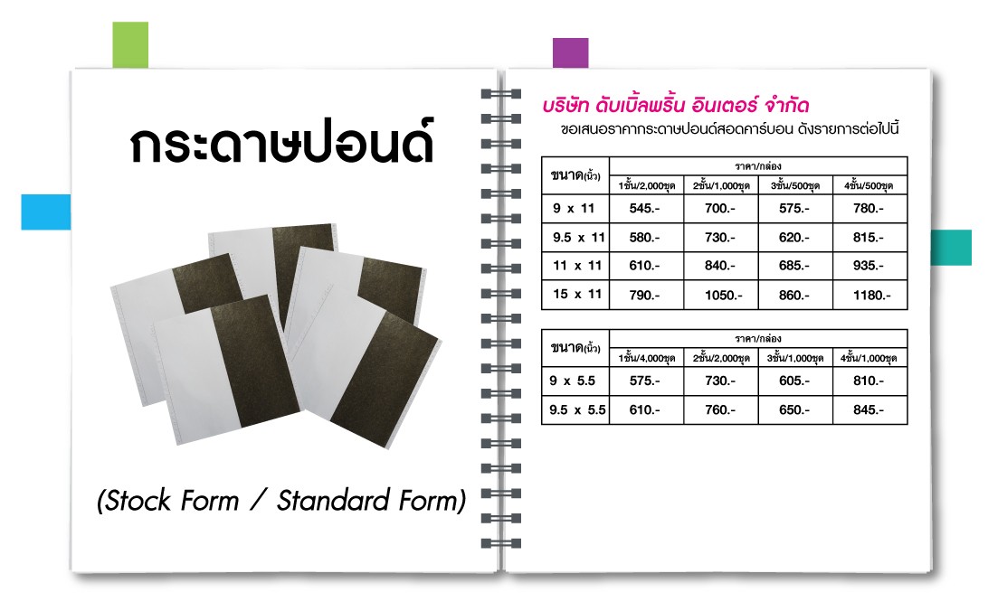 • กระดาษปอนด์ (Stock Form / Standard Form)