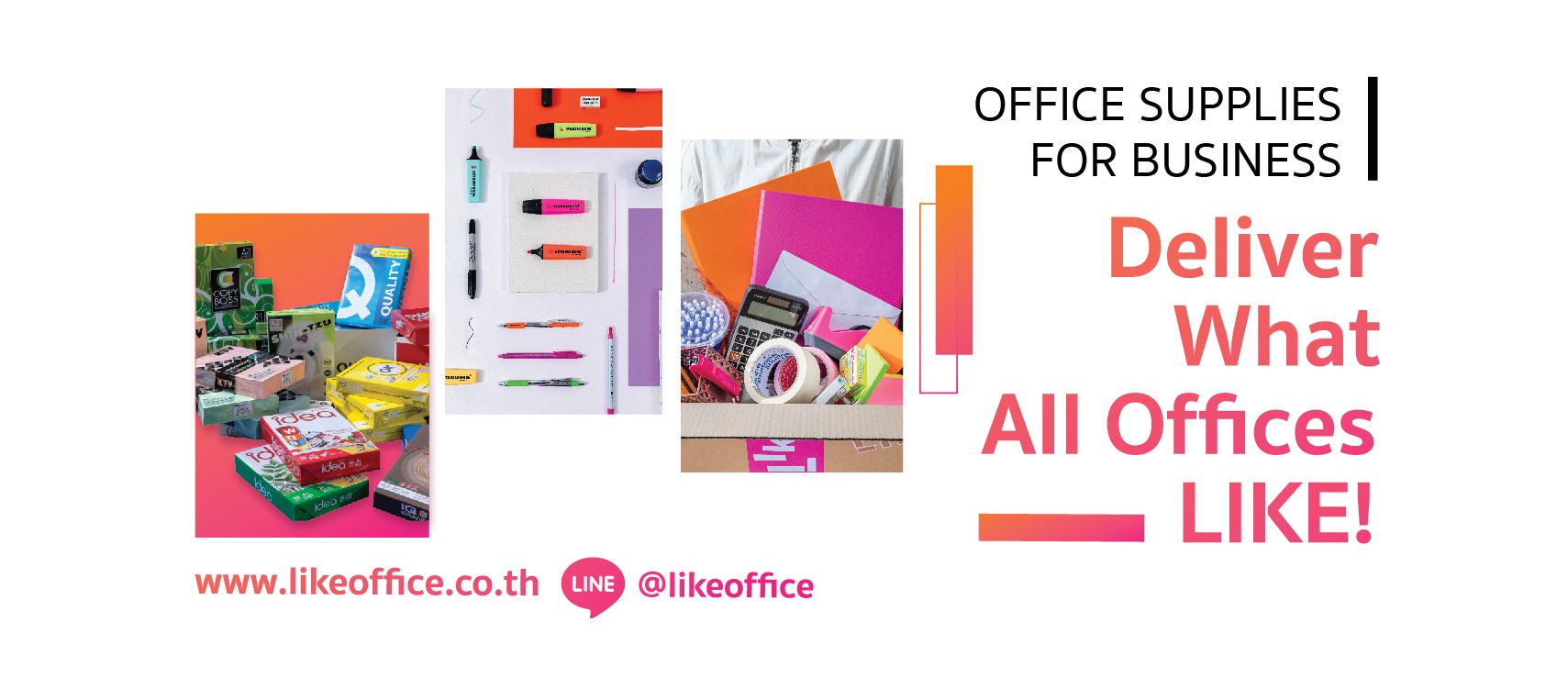 LIKE OFFICE  ผู้จำหน่ายอุปกรณ์สำนักงาน เครื่องเขียน และสินค้าหลากหลายที่ตอบโจทย์ชีวิตการทำงาน LIKE OFFICE  เติบโตขยายมาจากธุรกิจดั้งเดิม หนึ่งในผู้นำตลาด ผู้จัดจำหน่ายเครื่องเขียน และอุปกรณ์สำนักงานที่ ได้รับความไว้วางใจจากหน่วยงานราชการ ออฟฟิศ สำนักงาน โรงงานอุตสาหกรรม มากมายทั่วประเทศมากกว่า 40 ปี LIKE OFFICE เติบโตมาด้วยความเข้าใจความต้องการของลูกค้าอุปกรณ์สำนักงาน คัดสรรเฉพาะสินค้าที่มีมาตรฐาน พร้อมบริการที่ตอบโจทย์กลุ่มลูกค้าธุรกิจ สะดวกด้วยการสั่งซื้อและบริการลูกค้า หลากหลายช่องทาง ทั้งบนเว็บไซต์ โซเชี่ยลมีเดีย ทีมงานฝ่ายขายและฝ่ายบริการลูกค้า และทั้งบริการจัดส่งที่รวดเร็ว LIKE OFFICE อุปกรณ์สำนักงาน ที่ทุกออฟฟิศคลิก LIKE!