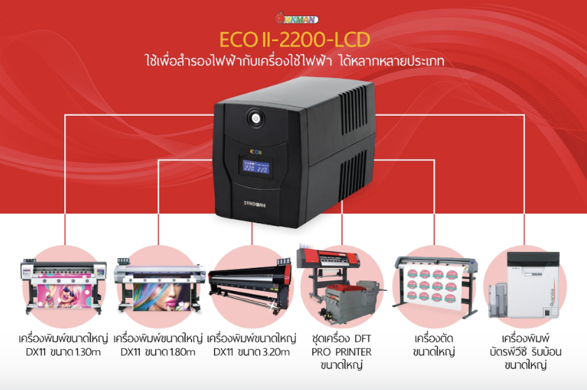 Inkman / Microink แนะนำเครื่องสำรองไฟฉุกเฉินให้กับลูกค้าของเราที่เลือกซื้อเครื่องพิมพ์ เครื่องสกรีน และเครื่องตัดสติ๊กเกอร์ เพื่อช่วยถนอมการใช้งานเครื่องใช้ไฟฟ้าของคุณให้อยู่ได้นานยิ่งขึ้น โดยสามารถป้องกันการกระชากของไฟที่อาจทำให้เครื่องใช้ไฟฟ้าชำรุดก่อนเวลาอันควรได้อย่างมีประสิทธิภาพ