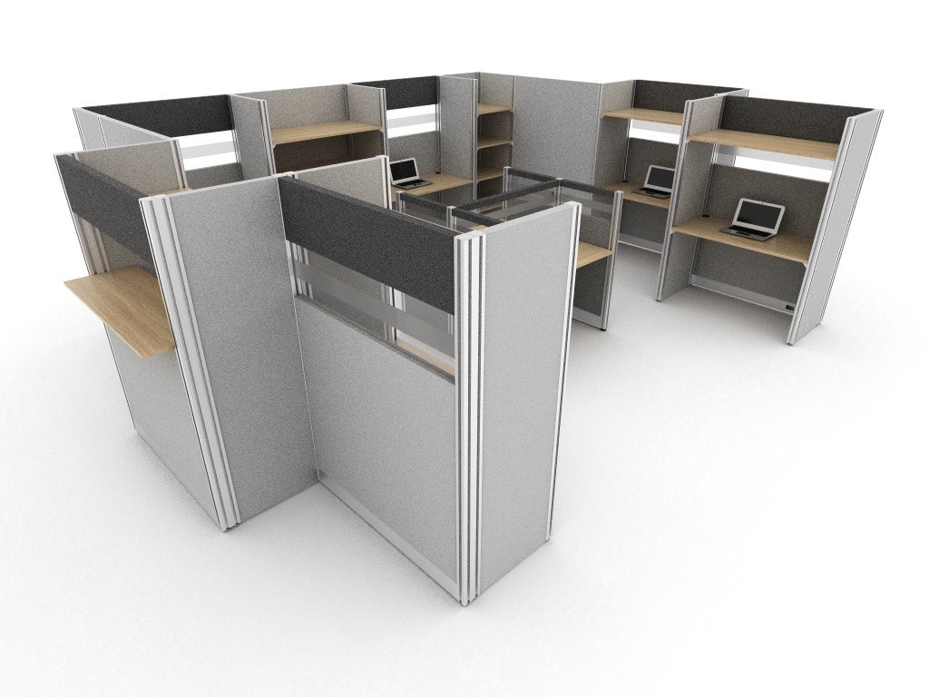ฉากกั้นสำนักงานรุ่นมาตรฐานแบบทึบทั้งแผ่นและแบบมีกระจก ขนาด กว้าง 60 cm ถึง 150 cm สูง 120 cm ถึง 160 cm มีทั้งแบบทึบและแบบมีกระจก นอกจากนี้ยังมีรุ่นที่มีรางร้อยสายไฟ โดย 1 ชุดจะมีเสาอลูมิเนียมชุปอโนไดซ์ สีแพลตตินั่ม 1 ต้น และปุ่มปรับระดับ 1 ชุด ผู้รับบริการสามารถเพิ่มเสาจบและขา T-Foot (กันล้ม)ได้ ในกรณีที่ต้องการต่อเป็นผนังมากกว่า 1 แผง และมีสีให้เลือกสีได้ถึง 8 สี