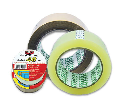 เทปกาวคุณภาพ สำหรับการใช้งานที่หลากหลาย ทั้งชนิด เทปโฟมสองหน้า เทปผ้า กระดาษกาวย่น (Masking Tape) เทปกาวสองหน้าชนิดเยื่อกระดาษ โอพีพีเทป และเทปโปมเนื้ออครีลิกใส เทปกาวสองหน้า TOV แรงยึดสูงพิเศษ ตามลักษณะการใช้งาน เช่น เทปสองหน้า (เทปแดง) เนื้อโฟมใสมีความ ซึ่งมีความหนาเพียง 1.1 มม. สามารถรองรับน้ำหนักได้ถึง 1 กิโลกรัม เหมาะสำหรับใช้งานภายนอกและภายในอาคาร ใช้แทนการติดด้วยสกรู เหมาะสอย่างยิ่งสำหรับติดป้ายบนแผ่นกระจกที่แนบเนียนไม่เห็นเนื้อโฟม