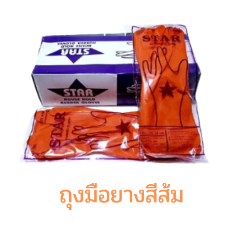 • ถุงมือยาง สีส้ม ตราสตาร์ (star) ไชส์ S M L ถุงมือ