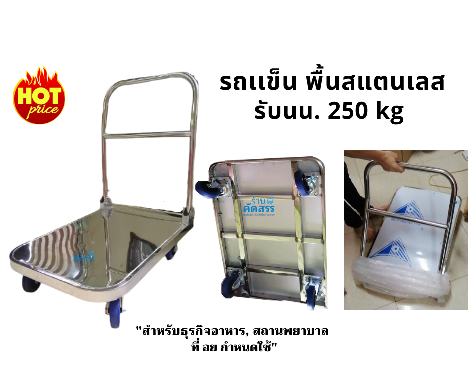 • รถเข็นของสแตนเลส รถเข็นพื้นสแตนเลส รับน้ำหนัก 250kg รถเข็นสินค้า รถเข็นพับได้ รถเข็นอเนกประสงค์ รถเข็น4ล้อ