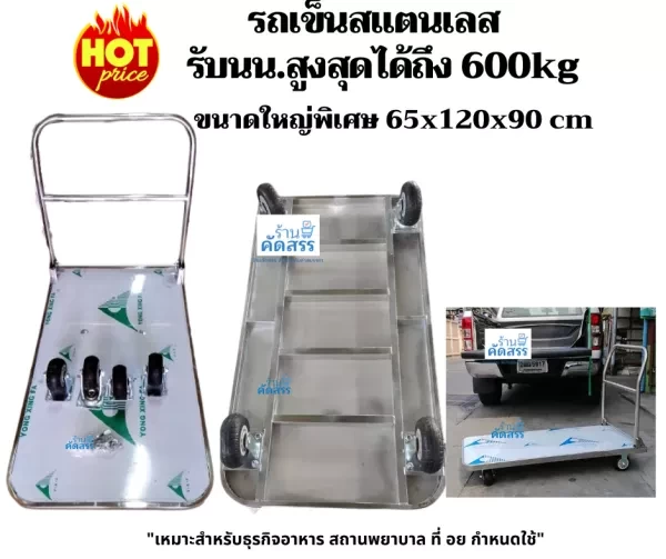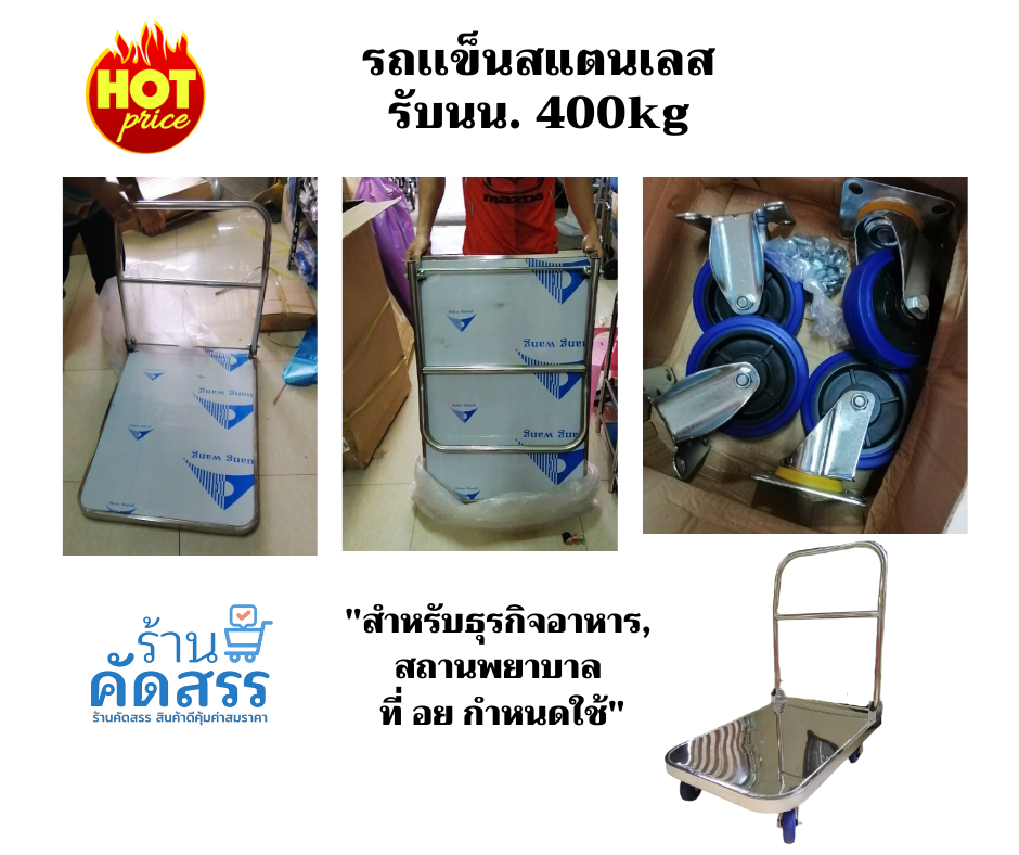 • รถเข็นของสแตนเลส รถเข็นพื้นสแตนเลส รับน้ำหนัก 300kg สูงสุด 400kg รถเข็นสินค้า รถเข็นพับได้