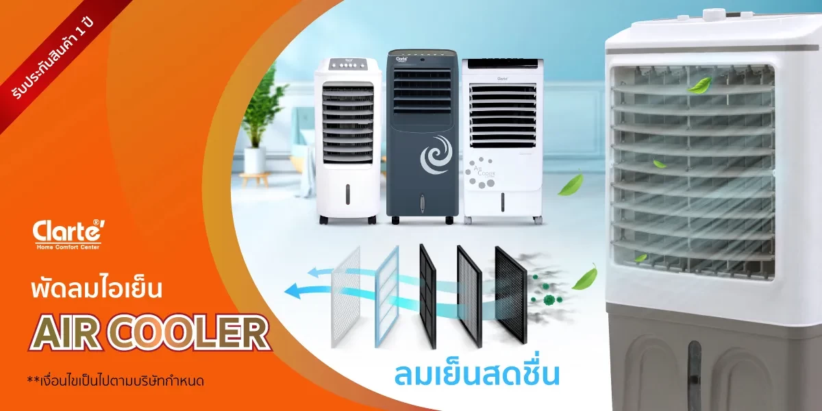 • พัดลม มีหลากหลายประเภท ที่มีชื่อเสียงสำหรับ Clarte’ คือพัดลมไอเย็น ที่ใช้น้ำ และน้ำแข็ง ช่วยให้อุณหภูมิของห้องลดลงตั้งแต่ 3-5 องศา และช่วยประหยัดพลังงานไฟฟ้า อีกทั้งไม่ทำให้มี ความชื้นในบริเวณที่ใช้ สะดวกเคลื่อนย้ายง่ายด้วยล้อที่ฐานเครื่อง รวมถึงพัดลมกระจายความเย็น ช่วยในการลดความร้อนภายในห้อง และใช้การดึงไอเย็นจากแอร์มาระบายให้ทั่วทั้งห้อง ประหยัดไฟ และควบคุมด้วยรีโมท ง่ายต่อการใช้งาน รวมถึงพัดลมประเภท 2 หัว และ 3 หัว