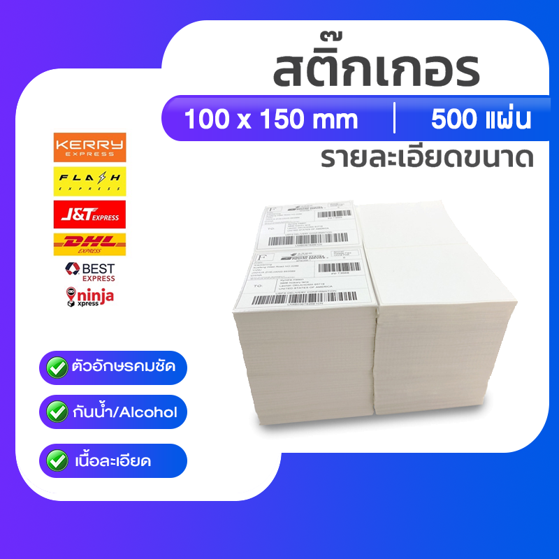 • [ส่งไวที่สุด!!] สติกเกอร์บาร์โค้ด 100×150 (500แผ่น) สติกเกอร์กระดาษความร้อน สติกเกอร์บาร์โค้ด ปริ้นใบปะหน้า T150s
