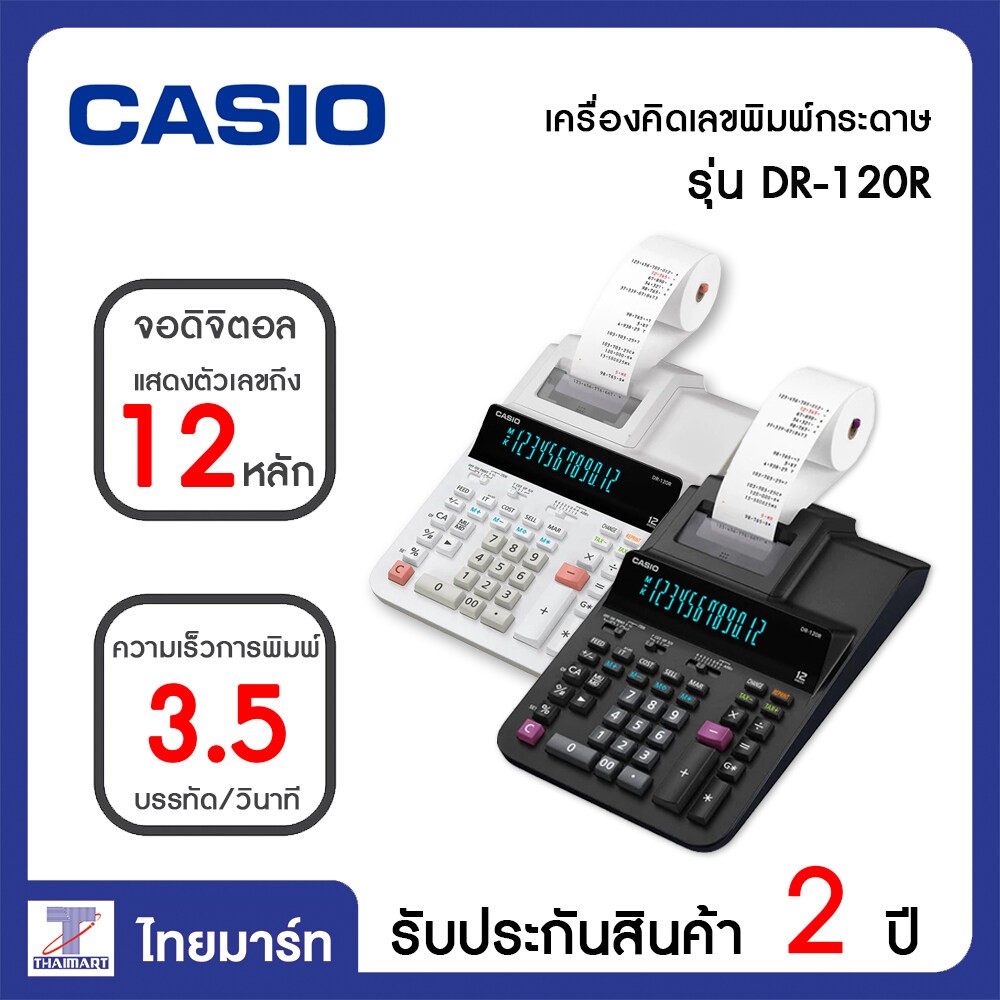 • Casio เครื่องคิดเลขพิมพ์กระดาษ Casio 12 หลัก รุ่น DR-120R ขาว  ดำ ไทยมาร์ท / Thaimart