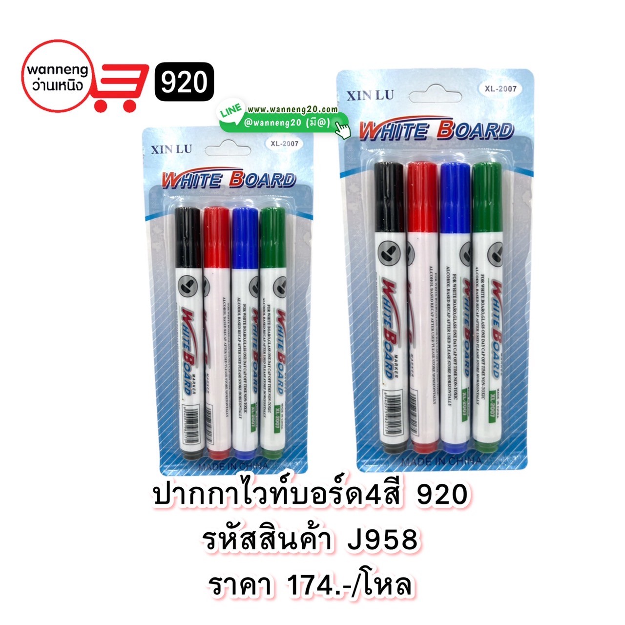 • J958 ปากกาไวท์บอร์ด 4 สี 920 1 โหล