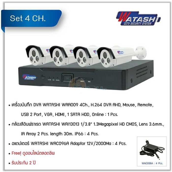 • ชุด CCTV Set. 4CH. AHD WATASHI#WAR009WAI13013