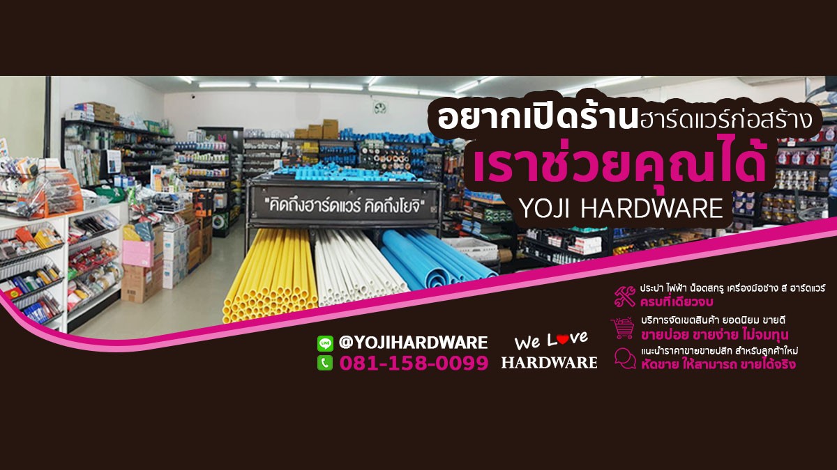 โยจิ ฮาร์ดแวร์ ขายส่งฮาร์ตแวร์ก่อสร้าง ครบวงจร อาทิ เครื่องมือช่าง อุปกรณ์ เครื่องมือก่อสร้าง ท่อพีวีซี อุปกรณ์ประปา สายไฟ อุปกรณ์ไฟฟ้า สี อุปกรณ์ทาสี น็อต ทินเนอร์ เครื่องมือไฟฟ้า ไปจนถึงชั้นวางสินค้าสำหรับผู้ที่ต้องการเปิดร้านฮาร์ตแวร์ ก่อสร้าง โยจิฮาร์แวร์ เป็นเจ้าแรกในประเทศไทยที่ให้คำปรึกษา แนะนำสำหรับผู้อยากเปิดร้านค้าอุปกรณ์เครื่องมือก่อสร้าง ตั้งแต่เริ่มต้นไปจนเปิดร้านขายได้ แม้จะไม่มีความรู้ ด้านนี้เลย การันตีด้วยความสำร็จของร้นคำาฮาร์ตแวร์ต่างๆ กว่า 200 ร้านคำาทั่วประเทศ ด้วยเรายึดถือหลักเราจะช่วยคิดแทนลูกค้า แนะนำเทคนิคการขาย ลงสินค้าที่ขายดีและขายง่าย ไม่จมทุน เพื่อใหลูกคำาประสบความสำเร็จ เป็นร้านคำที่แข็งแรงต่อไป