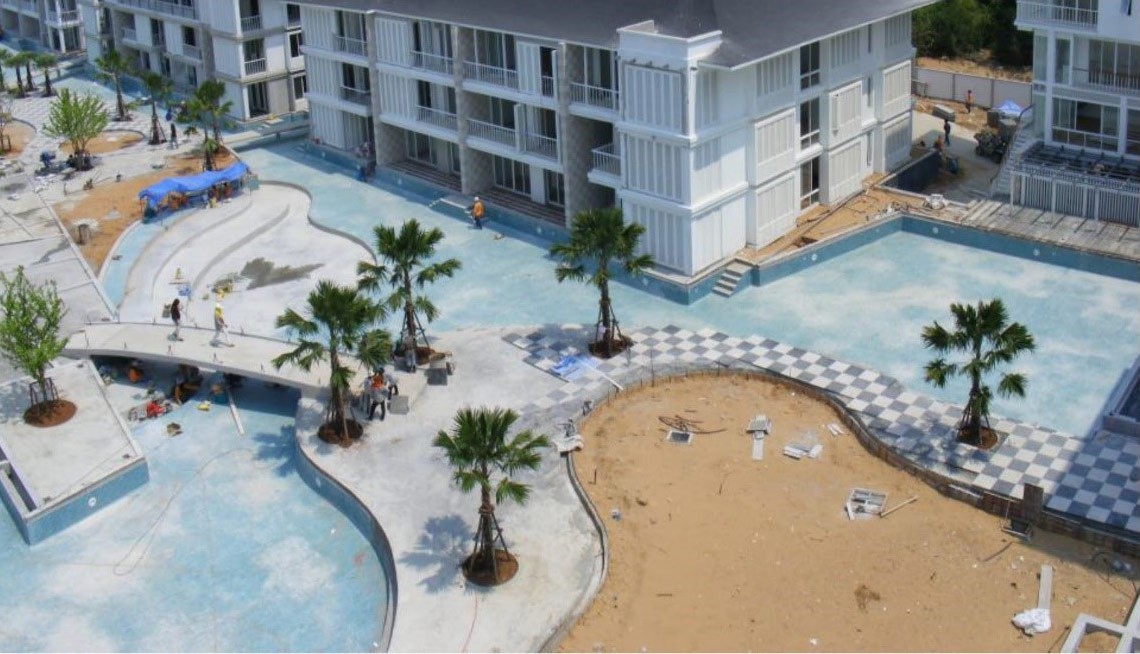 งานรับเหมาก่อสร้างอาคารคอนโด 3-5 ชั้น และอาคารวิลล่าพักอาศัย 1 ชั้น พร้อมสระว่ายน้ำขนาดใหญ่