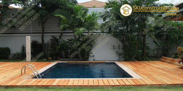 งานปูพื้นไม้สนสระว่ายน้ำ