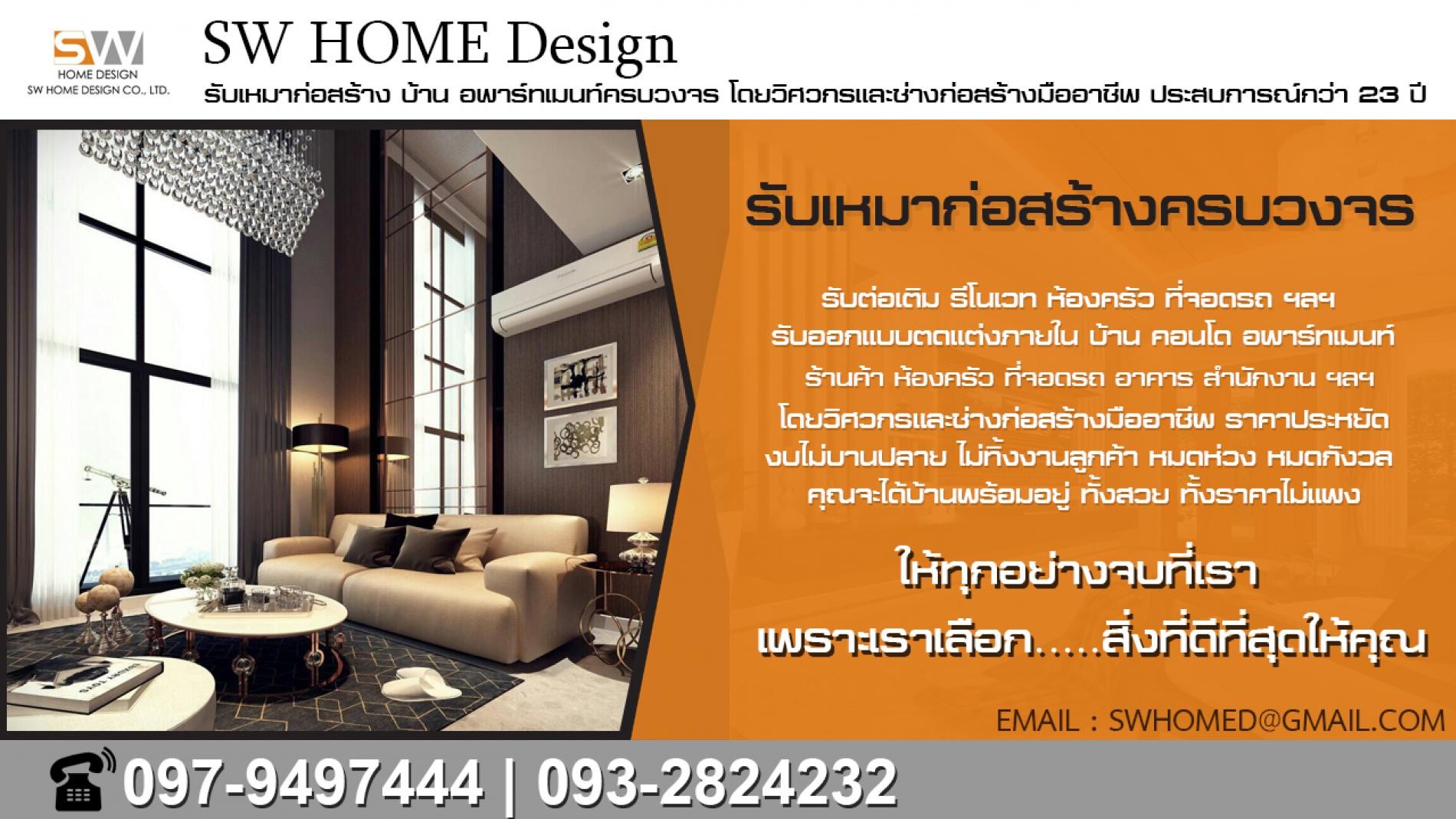 รับเหมาก่อสร้าง บ้าน อพาร์ทเมนท์ครบวงจร โดยวิศวกรและช่างก่อสร้างมืออาชีพ มีทีมวิศวกรคุมการก่อสร้างทุกขั้นตอน ราคาประหยัด งบไม่บานปลาย ไม่ทิ้งงานลูกค้า งานยากงานง่ายเราทำได้หมด รับทั้งงานกรุงเทพและต่างจังหวัด จากประสบการณ์กว่า23ปี วัสดุมาตรฐานในเครือ SCG รับต่อเติม รีโนเวทบ้าน คอนโด อพาร์ตเมนต์ ห้องครัว ที่จอดรถ อาคาร สำนักงาน ฯลฯ รับออกแบบบ้าน ออกแบบตามที่ลูกค้าชอบมีหลากหลายสไตล์ให้เลือก บ้านcontemporary Style บ้านModern Style บ้านNatural Style บ้านThai Oriental Style บ้านClassic Style บ้านColonial Style บ้านTuscany Style กลิ่นอายอิตาลีและตกแต่งแบบอิตาลี บ้านEnglish Country บ้านพร้อมสระว่ายน้ำ ฯลฯ รับเขียนแบบ ถอดBOQ 3D ครบวงจร ลูกค้าสามารถออกแบบบ้านเองได้ตามความชอบและงบประมาณ รับออกแบบ ตกแต่งภายใน บ้าน คอนโด อพาร์ตเมนต์ ร้านค้า ห้องครัว ที่จอดรถ อาคาร สำนักงาน เฟอร์นิเจอร์บิวท์อิน ครัวบิวท์อิน ฯลฯ รับจัดสวนlandscape ดูแลสวนโดยมืออาชีพด้านพันธุ์ไม้ มีประสบการณ์กว่า18ปี ให้คำปรึกษาแนะนำ และเลือกพันธุ์ไม้ได้ถูกต้องตามความต้องการของลูกค้าและสภาพแวดล้อมที่ควรปลูกไม้ใด ดูแลจัดการให้ทั้งหมดจนลูกค้าพอใจ