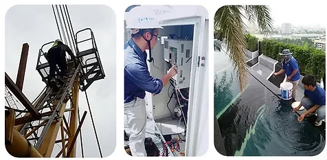 กระเช้าไฟฟ้า ใช้สำหรับการทำงานที่อาคารสูงปลอดภัย รวดเร็วโดยไม่ต้องใช้นั่งร้านเช่น ติดตั้งกระจก-อลูมิเนียม ทำความสะอาดกระจก ทาสี ขนของขึ้นที่สูง ซ่อมแซมรอยร้าวอาคาร ฯลฯ