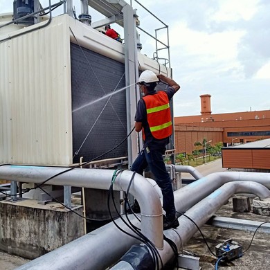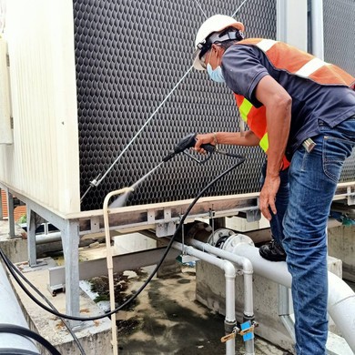 บริการล้าง Cooling Tower ( ทั้งภายใน ภายนอก และส่วนประกอบต่างๆ)  ติดตั้ง, ซ่อมแซมและเปลี่ยนอะไหล่ Cooling Tower บริการวิเคราะห์คุณภาพน้ำของระบบ Cooling Tower พร้อมเคมีภัณฑ์ป้องกันตะไคร่น้ำ, ตะกรันหินปูน, สนิมและการกัดกร่อน บริการล้าง Condenser ทั้งแบบแยงและใช้เคมีภัณฑ์