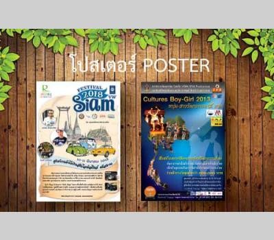 โปสเตอร์ Poster คือสิ่งพิมพ์เป็นกระดาษขนาดใหญ่ที่มีการตีพิมพ์เพียงหน้าเดียวเป็นส่วนใหญ่ โปสเตอร์ มีวัตถุประสงค์เพื่อการประชาสัมพันธ์หรือโฆษณา โดยโปสเตอร์จะถูกออกแบบมาพื่อให้ดูโดดเด่นและมองเห็นได้อย่างชัดเจนแม้มองจากระยะไกล มักให้ความสำคัญที่รูปภาพมากกว่าตัวหนังสือส่วนด้านหลัง นั้นเว้นเอาไว้สำหรับทากาวปิดบนบอร์ดหรือตามฝาผนัง  เช่น โปสเตอร์โปรโมทการท่องเที่ยว, โปสเตอร์รูปดารานักแสดงที่มีคิวขึ้นโชว์ในงานต่าง ๆ หรือโปสเตอร์หนังที่กำลังเข้าฉายในขณะนั้น ซึ่งหากได้ทีมงานหรือคนที่มีความสามารถทางด้านนี้มาออกแบบแล้วละก็ เปอร์เซ็นต์ของความสำเร็จที่มุ่งหวังเอาไว้จากการจัดทำโปสเตอร์ก็จะสูงขึ้นจนเกือบเต็มร้อยเลยทีเดียว กระดาษที่นิยมนำมาใช้ในการพิมพ์โปสเตอร์ได้แก่กระดาษปอนด์ ขนาดความหนา 120 แกรม กระดาษอาร์ตการ์ด ขนาดความหนาตั้งแต่ 160, 190, 310 แกรม