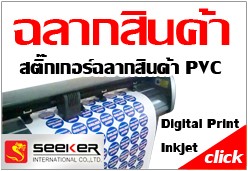 พิมพ์สติ๊กเกอร์พีวีซีฉลากสินค้า ทั้งงานพิมพ์แบบ Digital Print และ Inkjet สีติดทนทานเรียบเนียน สีคุณภาพดีเยี่ยม เนื้อสติ๊กเกอร์ ใส และ ขาวขุ่น เคลือบด้าน เงา และ ไม่เคลือบ Sticker PVC Outdoor นิยมใช้กับงานประเภทที่ต้องเปียกหรือโดนน้ำ ตากฝนและโดนแสงแดดจัดเป็นเวลานาน สติ๊กเกอร์พีวีซี นั้นมีหลายชนิด เช่น สติ๊กเกอร์พีวิซีใส สติ๊กเกอร์พีวีซีขาวเงาสติ๊กเกอร์พีวีซีขาวนวล สติ๊กเกอร์พีวีซีกาวเหนียวพิเศษ และสติ๊กเกอร์พีวีซีอื่นๆ อีกมากมาย ซึ่งเหมาะสำหรับติดกระจก พลาสวู๊ด อะคิลิค รถยนต์ ฟิวเจอร์บอร์ด ฝาผนังที่ผิวเรียบเนื้อแข็ง และฉลากสินค้า