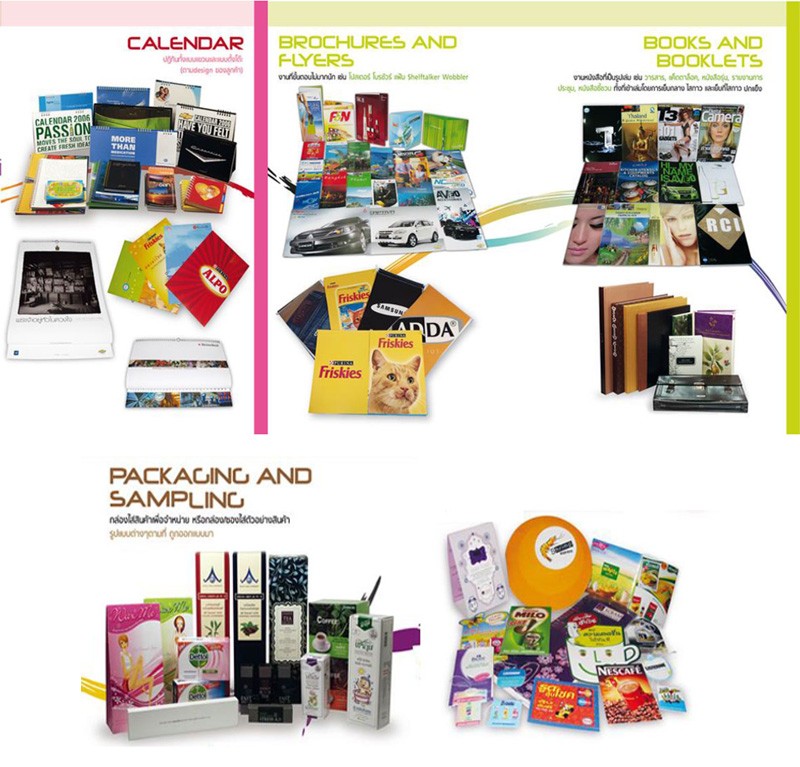 โดยบริษัทฯได้รับความไว้วางใจจากทางองค์กรเอกชน ห้างร้าน ธนาคาร รัฐวิสาหกิจ และ Agency โฆษณาต่างๆ ในการผลิตผลงานสื่อสิ่งพิมพ์ เพื่อใช้ในการโฆษณาประชาสัมพันธ์สินค้าและบริการ