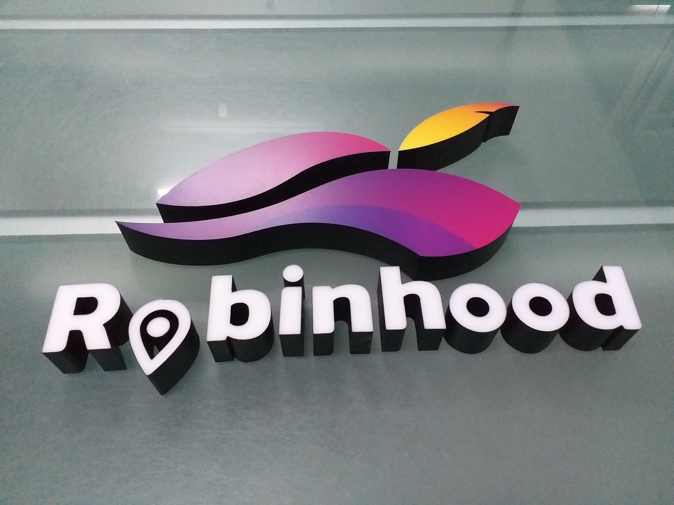 • งานป้ายตัวอักษรไฟออกหน้า งาน ROBINHOOD