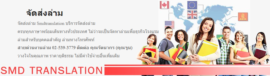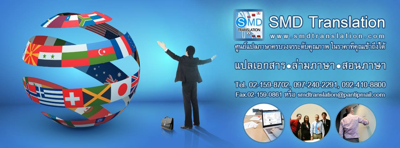 SMDTranslation ศูนย์แปลภาษานานาชาติชั้นนำของประเทศ เราพร้อมให้บริการแปลเอกสารภาษาอังกฤษ จีน เกาหลี ญี่ปุ่น รัสเซีย เยอรมัน และภาษาอื่นๆ เรามีความเชี่ยวชาญด้านภาษา ประสบการณ์มากว่า 10 ปีและมีความมุ่งมั่นเต็มเปี่ยม พร้อมทีมงานนักแปลเจ้าของภาษาทรงคุณวุฒิ ที่พร้อมดูแลงานของท่านได้เป็นอย่างดี และส่งงานตรงเวลา SMDTranslation บริษัทเราคือผู้นำในด้านงานล่ามแปลภาษาให้บริการล่ามภาษาต่าง ๆ อาทิเช่น ภาษาไทย ภาษาจีน ภาษาอังกฤษ ภาษาญี่ปุ่นภาษาฝรั่งเศส ภาษาสเปน ภาษาเกาหลี ภาษาเยอรมันภาษาอิตาลี ภาษารัสเซีย และภาษาอื่น ๆ ทั่วโลก SMDTranslation เปิดบริการสอนภาษาจีนสำหรับ เด็ก และ ผู้ใหญ่ มีให้เลือกเรียนทั้งแบบเรียนตัวต่อตัว ตามสถานที่ที่เราเตรียมไว้ให้ สำหรับผู้เรียนหรือสอนภาษาจีนแบบส่วนตัวตามบ้าน โดยทีมครูเจ้าของภาษาที่ดีที่สุดมีี ประสบการณ์ในด้านการสอน และ เทคนิคในการถ่ายทอดที่ทำให้การเรียนเป็นไปสนุนสนานและมีประสิทธิภาพ ทั้งนี้เราได้เน้นในเรื่องของการสนทนาซึ่งผู้เรียนสามารถนำไปใช้ในชีวิตประจำวันได้จริงในเวลาอันรวดเร็ว