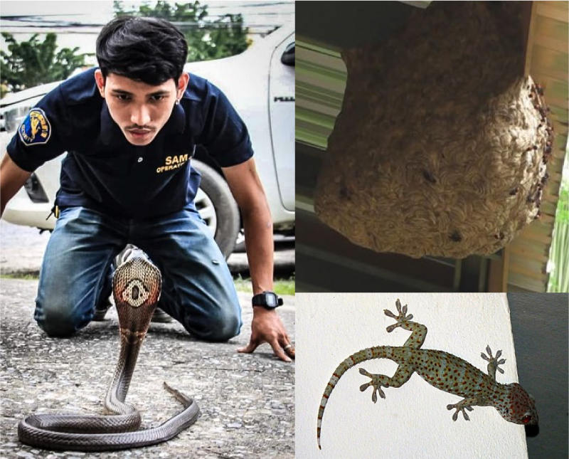 บริษัทรักษาความปลอดภัยแซม ให้บริการเคลื่อนย้ายสัตว์ และแมลงที่ไม่พึงประสงค์ โดยไม่ทำอันตรายต่อสัตว์ อาทิ งู ตัวเงินตัวทอง ตุ๊กแก จิ้งจก รังต่อ รังแตน ด้วยเครื่องมือที่มีความพร้อม และพนักงานที่มีความชำนาญ