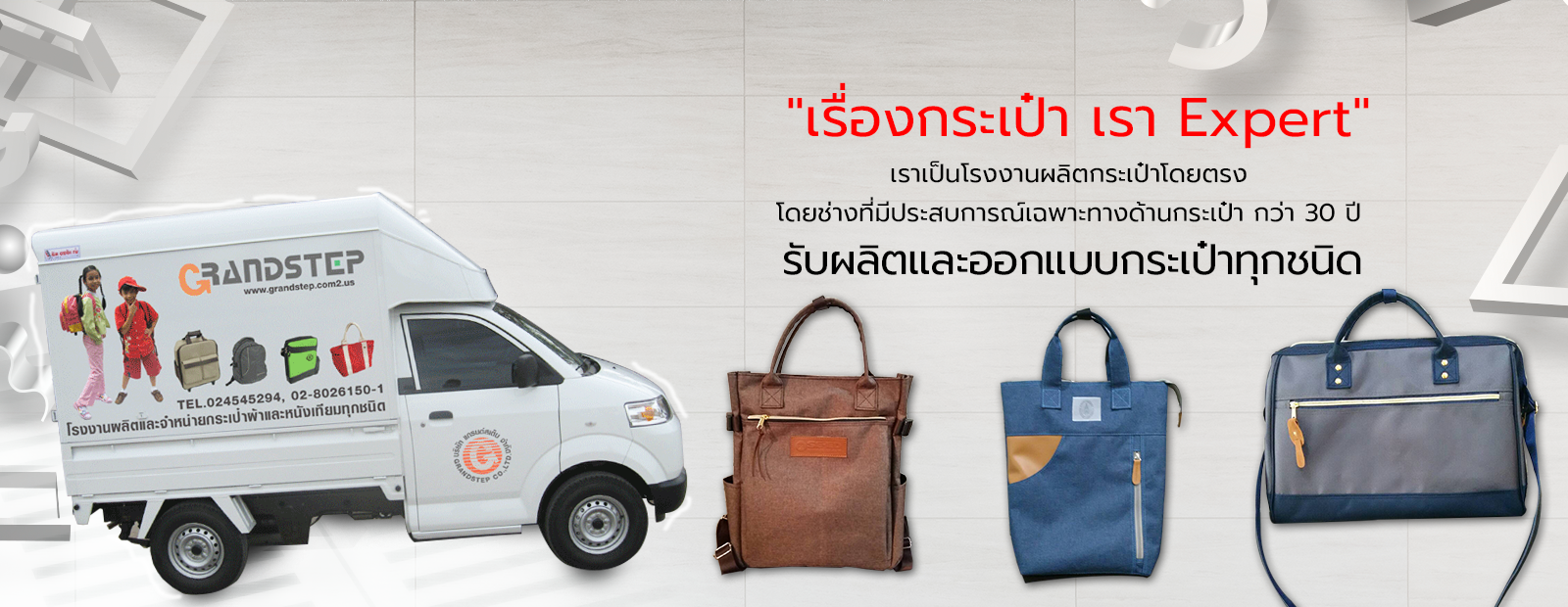 เราเป็นโรงงานผลิตกระเป๋าโดยตรง โดยช่างที่มีประสบการณ์เฉพาะทางด้านกระเป๋า กว่า 30 ปี รับผลิตและออกแบบกระเป๋าทุกชนิด เช่น กระเป๋าใส่เอกสารใช้แจกในงานสัมมนา,กระเป๋า Premium แจกลูกค้า,กระเป๋านักเรียน,กระเป๋าสะพาย,กระเป๋าลดโลกร้อน,กระเป๋าเป้ หรือกระเป๋าอเนกประสงค์ต่างๆ พร้อมสกรีนหรือปักโลโก้ข้อความตามความต้องการ