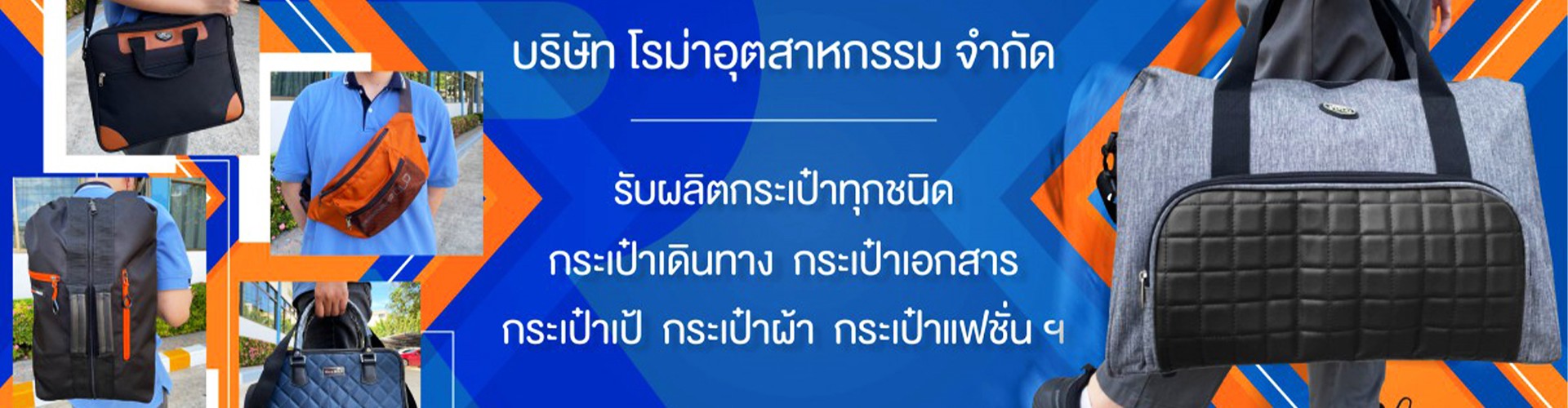 โรม่าอุตสาหกรรม รับผลิตกระเป๋าทุกชนิด ไม่ว่าจะเป็น กระเป๋าเดินทาง กระเป๋าเป้ กระเป๋าสะพาย กระเป๋าผ้า กระเป๋าพรีเมี่ยม ฯลฯ ถือเป็นโรงงานผลิตกระเป๋าที่ใหญ่ติดอันดับ 1 ใน 3 ของประเทศไทย ซึ่งมี ลูกค้าเป็นองค์กรระดับแนวหน้าของประเทศมากมาย ไม่ว่าจะเป็น ธนาคารสั่งผลิตกระเป๋าพรีเมี่ยมบัตรเครดิตต่างๆ แบรนด์สินค้าชั้นนำ เช่น FBT  ปตท.  การบินไทย  รวมถึงค่ายรถยนต์ชั้นนำ เช่น  Toyota  Isuzu  Nissan  ฯลฯ