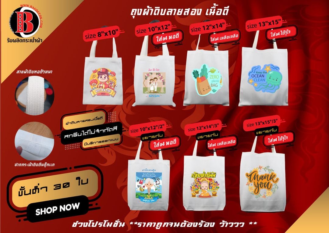 ร้านเเบ๊กดีโอเค เราเป็นโรงงานรับผลิตเเละสั่งทำ ถุงผ้า ถุงผ้าดิบ กระเป๋าผ้าดิบ กระเป๋าผ้าเเคนวาส ครบวงจร ผลิตด้วยประสบการณ์ 10 ปี บริการออกแบบ และสกรีน โลโก้ และข้อความ ลงบนถุงผ้าให้กับ บริษัท ห้าง ร้านค้า องค์กร หรือ หน่วยงานภาครัฐ