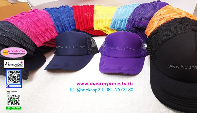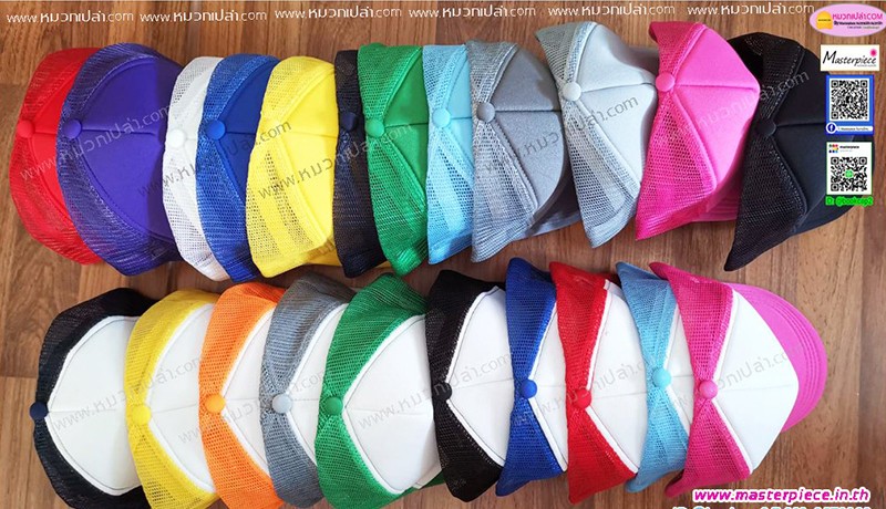 หมวกที่ผลิตจากเนื้อผ้าโพลีดีวาย ด้านหน้าหมวกบุด้วยฟองน้ำดันทรงสวยงาม แข็งแรง ด้านหลังเป็นเน็ตตาข่ายโพลีเอสเตอร์ ขนาดฟรีไซซ์ ใส่ได้ทั้งเด็กผู้ใหญ่ ระบายอากาศดี ไม่อับชื้น