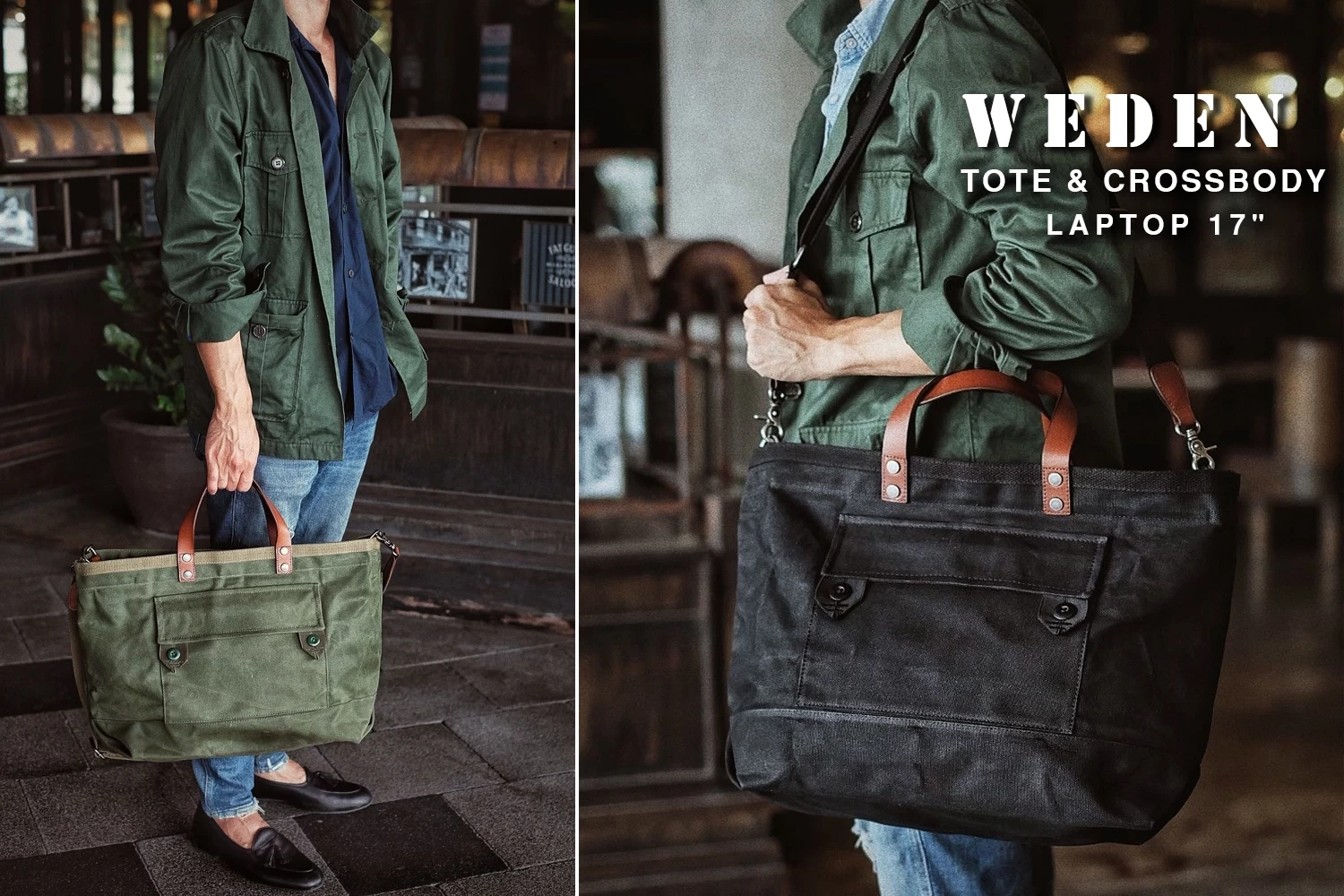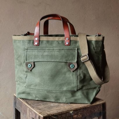 กระเป๋าผ้าWAXแคนวาสหนา18oz ขนาดกลางที่ใช้ทำงานได้ทุกวันใส่ LAPTOPได้ถึง 17" มีซิปปากกระเป๋าเก็บของได้มิดชิด