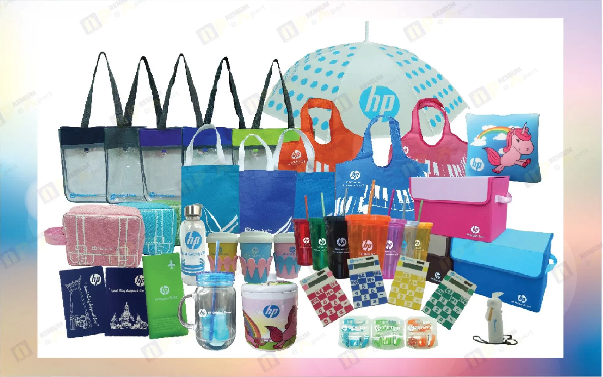 สินค้าพรีเมี่ยมกระเป๋า กระเป๋าผ้าเป็นของพรีเมี่ยมยอดนิยม อันดับต้นๆ ของลูกค้าทุกกลุ่ม เนื่องจากถูกใจผู้รับของขวัญทุกเพศ ทุกวัย และ สามารถดัดแปลงให้เข้ากับตัวสินค้าที่ต้องการส่งเสริมการขายได้ง่าย เหมาะกับการกิจกรรมการตลาด พกพาสะดวก ขนส่งง่าย และสามารถทำลวดลาย รูปทรงได้หลายแบบ กระเป๋าที่เป็นที่นิยมมาก เช่น กระเป๋าลดโลกร้อน กระเป๋าเครื่องสำอาง กระเป๋าผ้าร่ม กระเป๋าผ้า ถุงผ้า ถุงผ้าลดโลกร้อน กระเป๋าผ้าพับได้ กระเป๋าผ้าแคนวาส กระเป๋าเป้ กระเป๋าใส่คอมพิวเตอร์ กระเป๋าพีวีซี กระเป๋าเดินทาง กระเป๋าแจก กระเป๋าพรีเมี่ยม กระเป๋าคาดเอว กล่องผ้า กล่องพับได้ กระเป๋าเอกสาร กระเป๋าแถม กระเป๋าพรีเมี่ยม และอีกมากมาย
