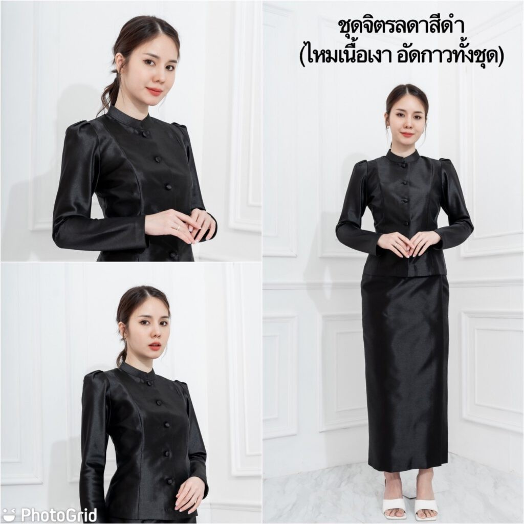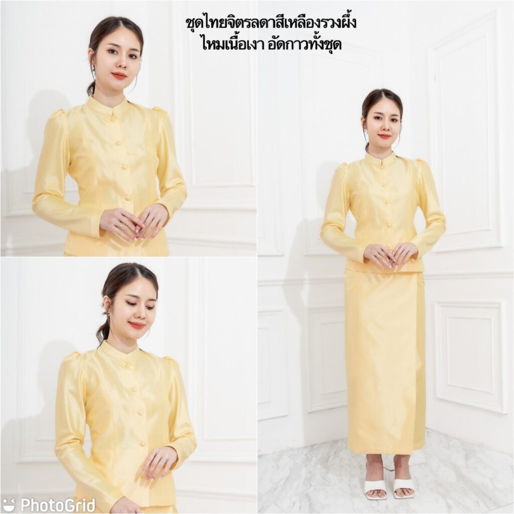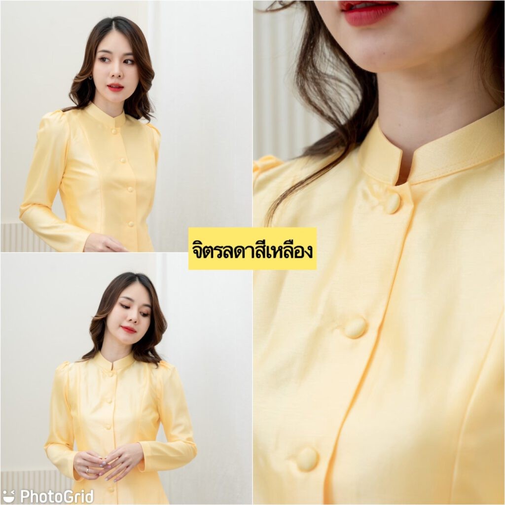 ชุดจิตรลดา มีมากกว่า 10 สี คัตติ้งเนี้ยบ ใส่แล้วเข้ารูปสวยงาม เหมาะสำหรับงานพิธี รับเสด็จ หรืองานทางการ เนื้อผ้าไหมอิตาลี่เนื้อเงา อัดกาวทั้งชุด ลูกค้ามั่นใจได้ เลยค่ะว่าใส่แล้วจะอยู่ทรงสวย ไม่คันแน่นอน
